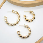 18K Gold 5mm Filled Twisted Open Hoop Stud Earrings (K18-20)