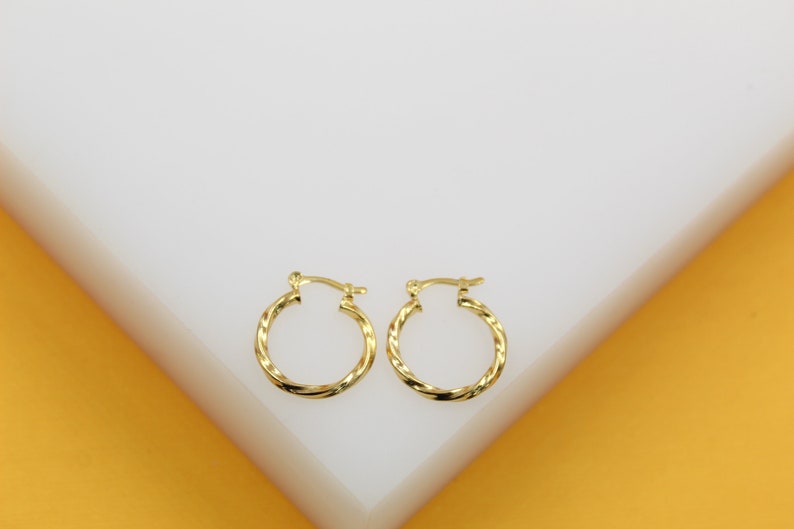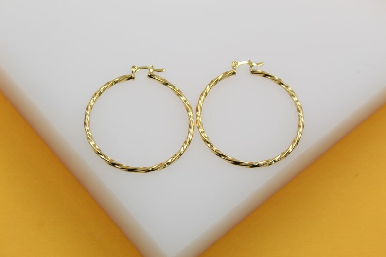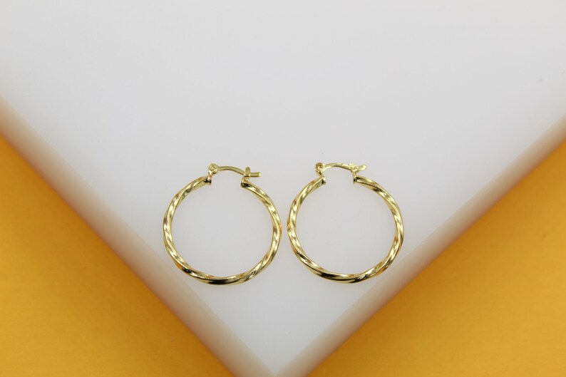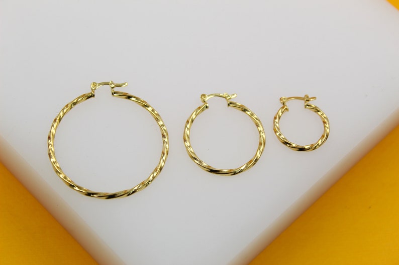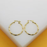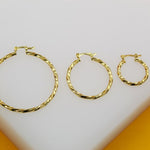 18K Gold Filled 2mm Twisted Hoops Lever Back Earrings | Gold Twisted Hoop Earring (J104)
