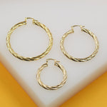 18K Gold Filled 3mm Thick Twisted Hoops Lever Back Earrings (J115, J116, J117, J156)