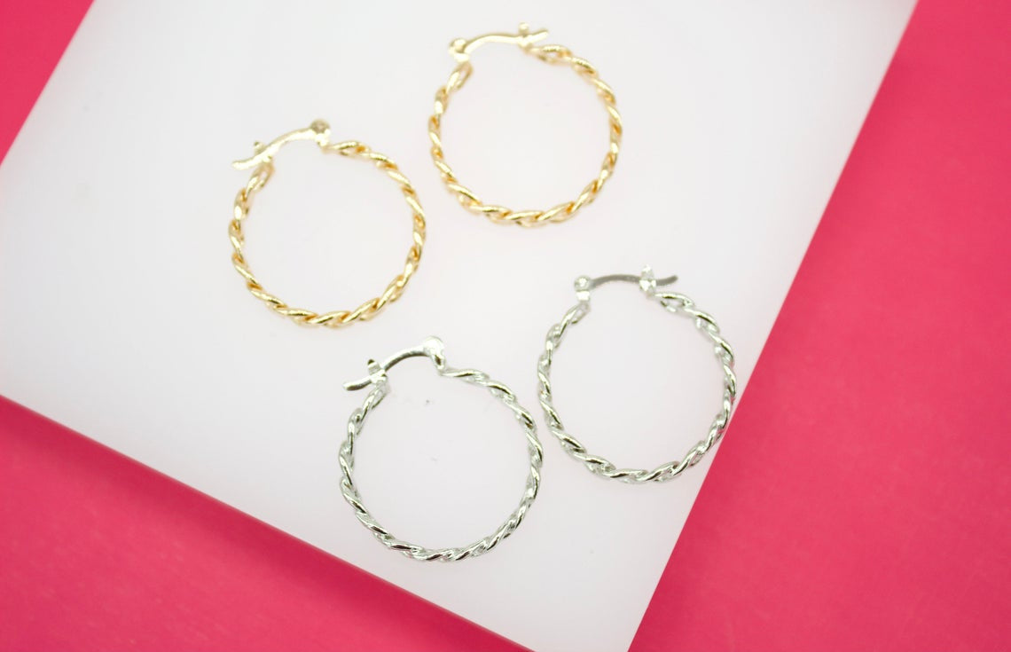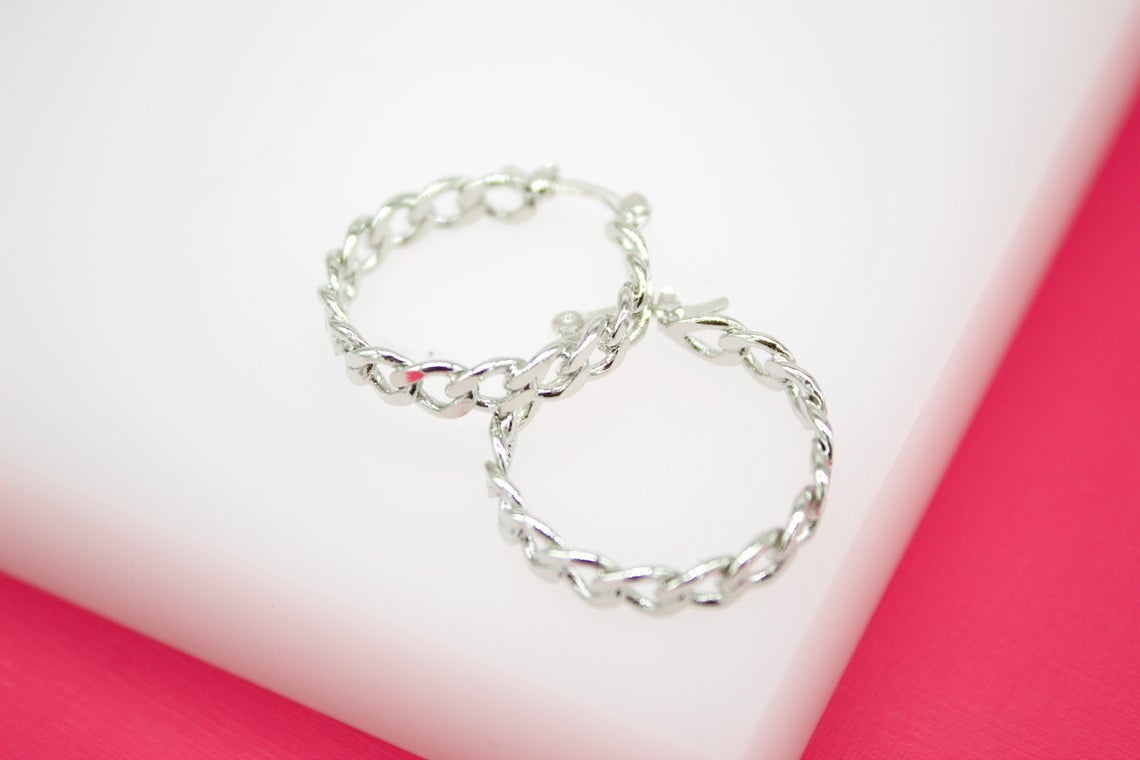 18K Gold Filled 4mm Curb Cuban Hoops Lever Back Hoop (K198)