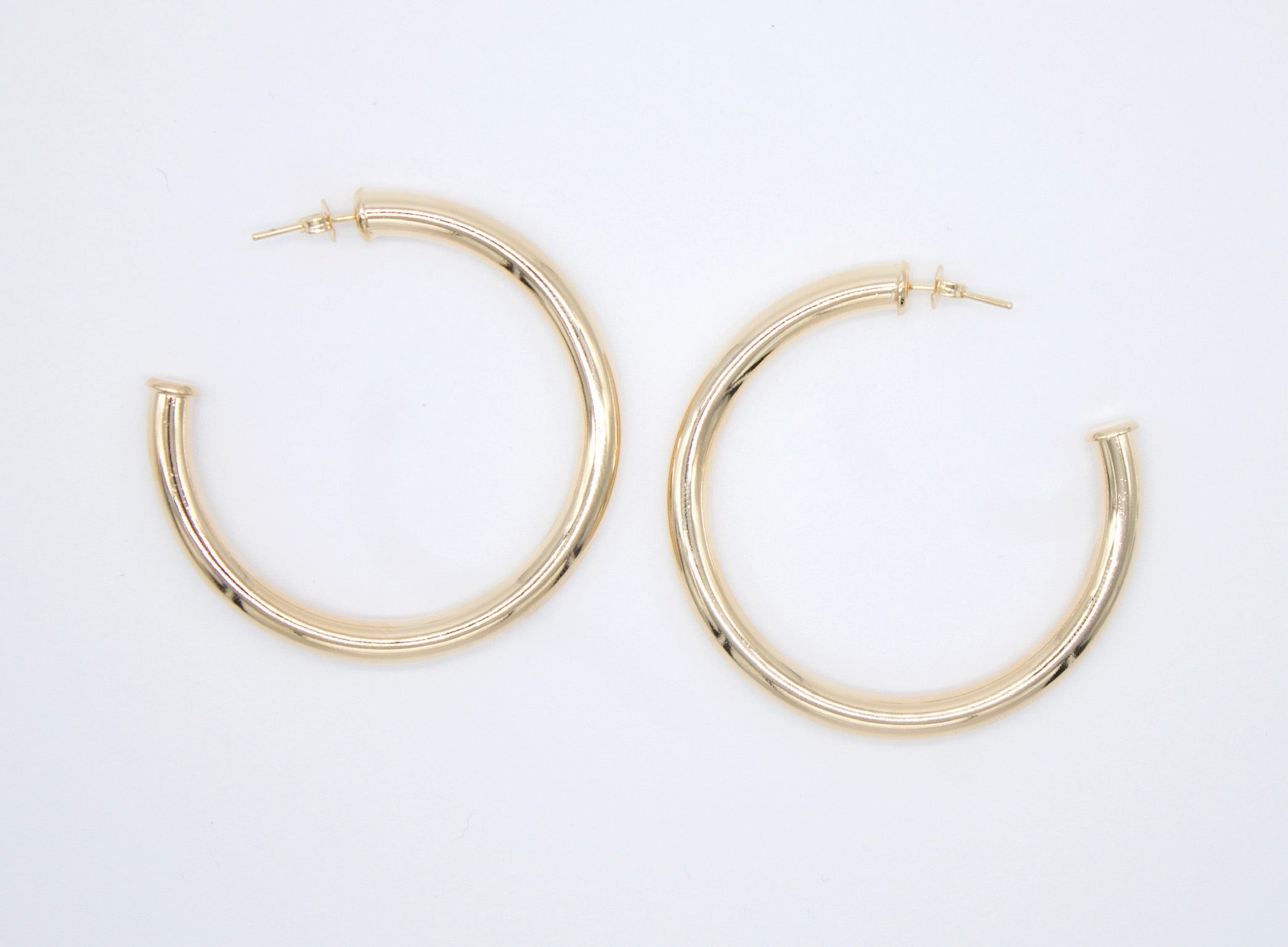 18K Gold Filled 4mm Open Stud Hoops Earrings (J53)