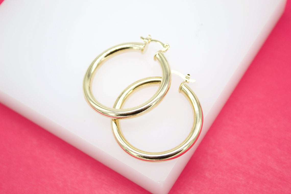 18K Gold Filled 4mm Slim Hoops Lever Back Hoop (J65)