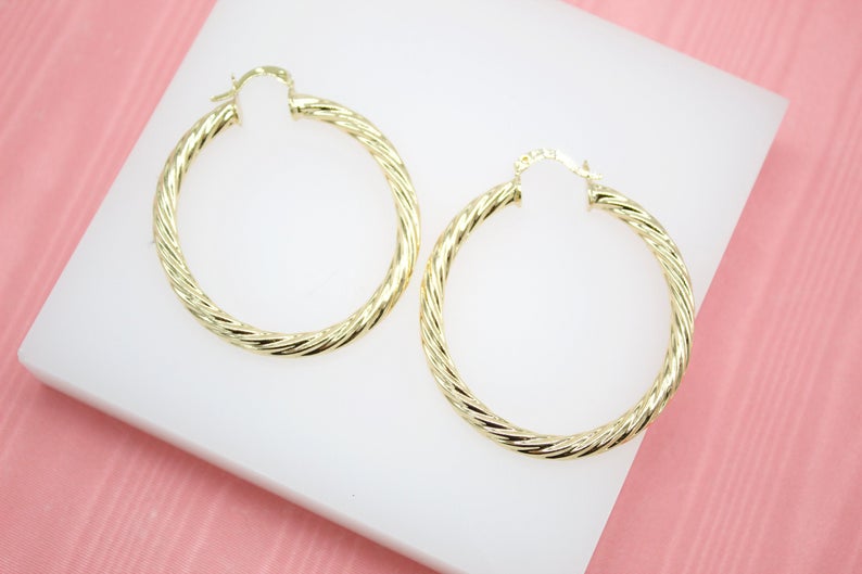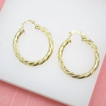18K Gold Filled 4mm Thick Round Twisted Hoops Lever Back Earrings (J121-122)