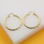 18K Gold Filled 4mm Thick Twisted Hoops Lever Back Earrings (J117-115)