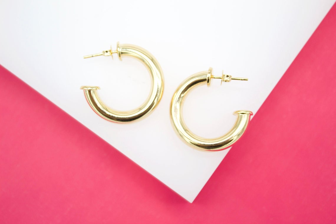 18K Gold Filled 5mm Open Hoop Stud Hoops Earrings