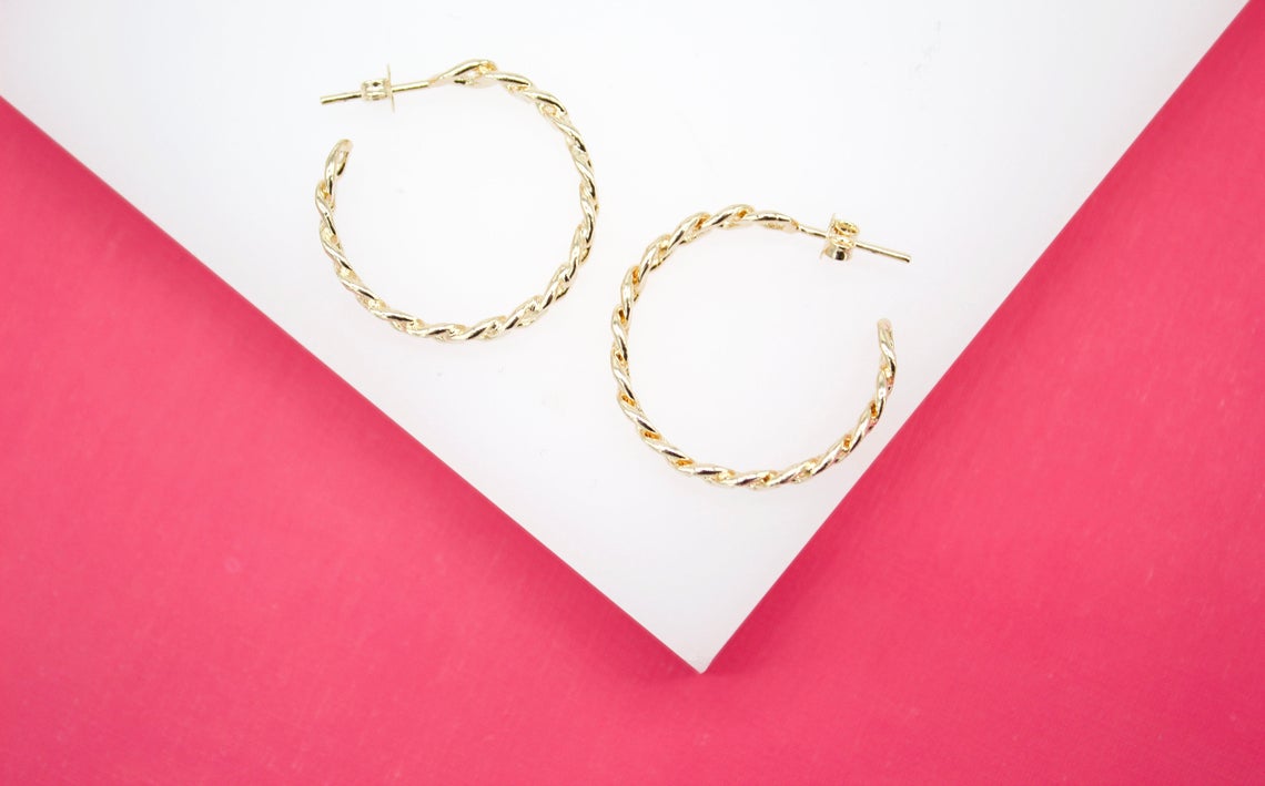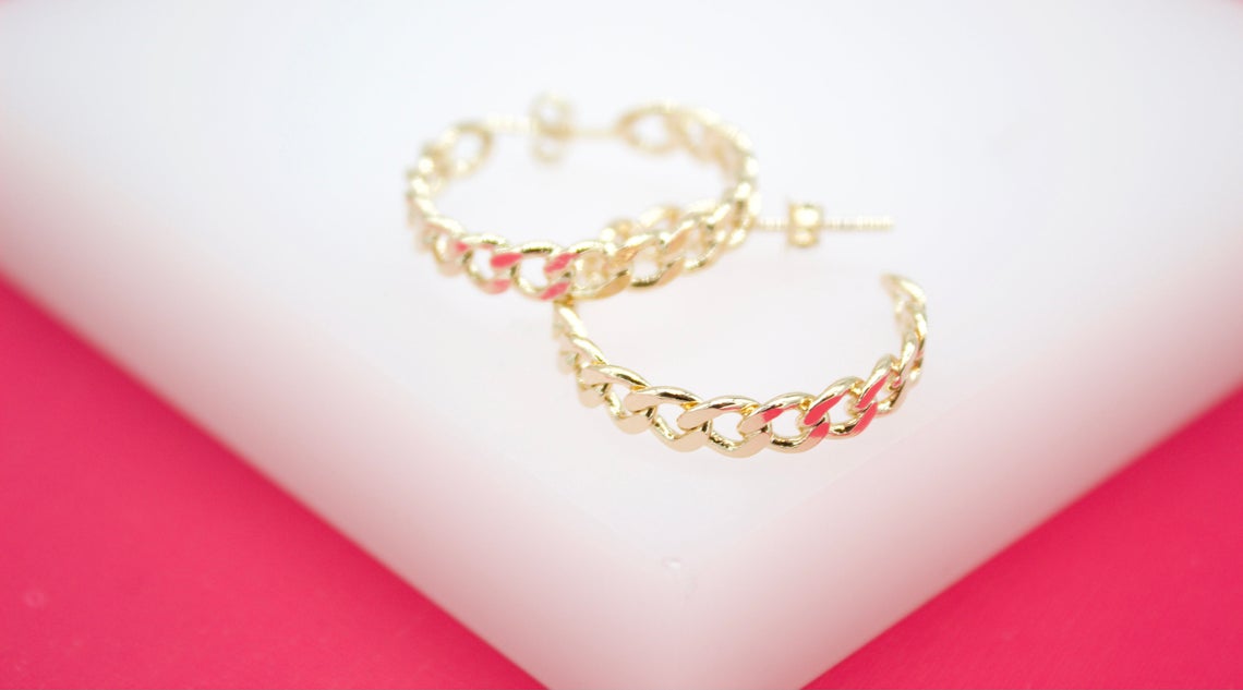 18K Gold Filled 5mm Slim Curb Cuban Open Hoops(K199)