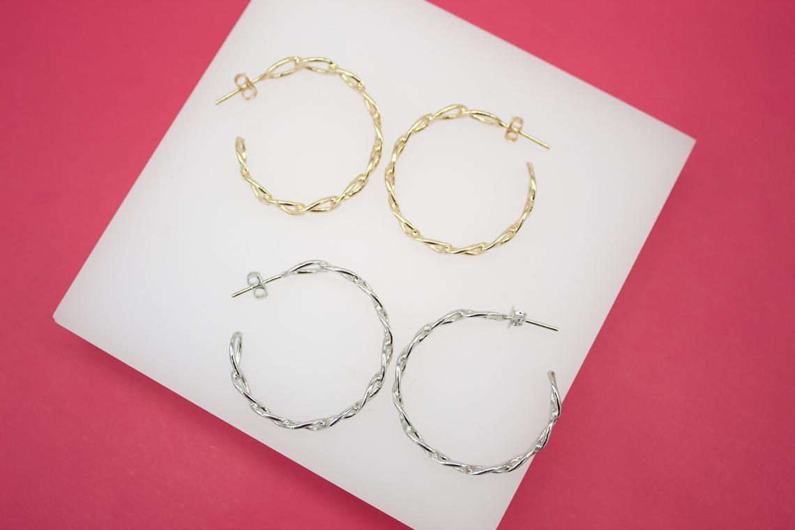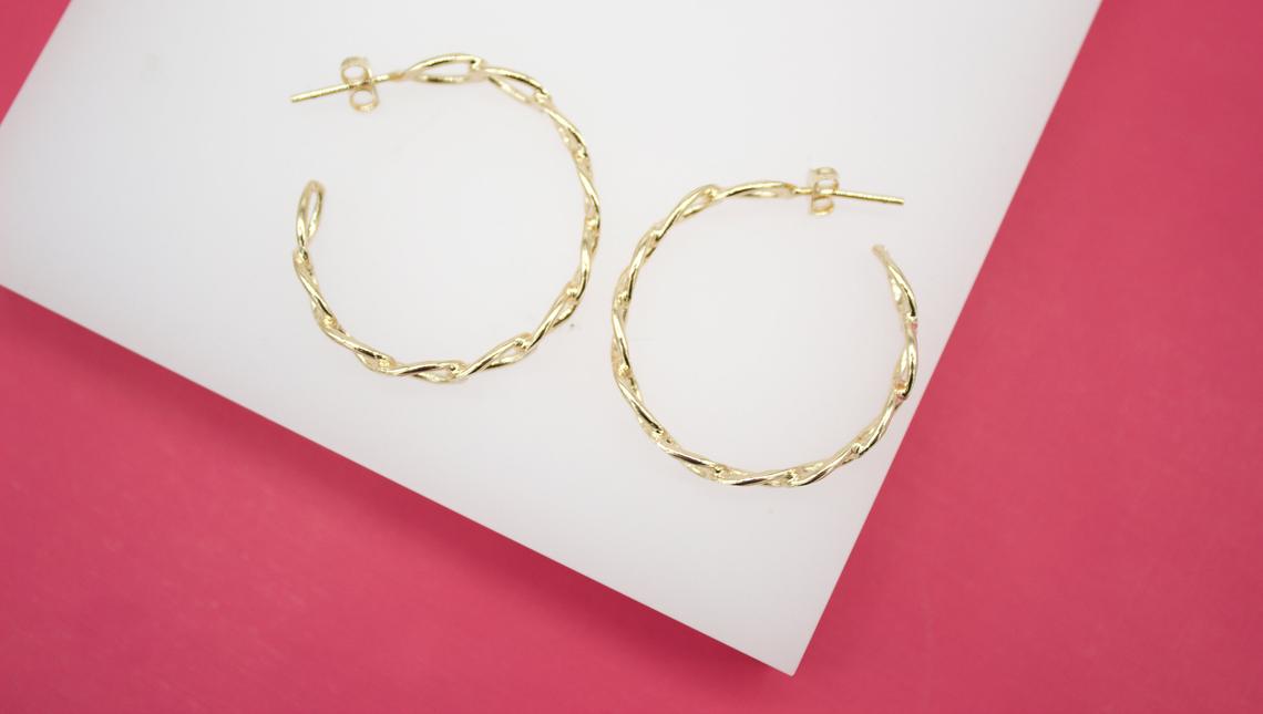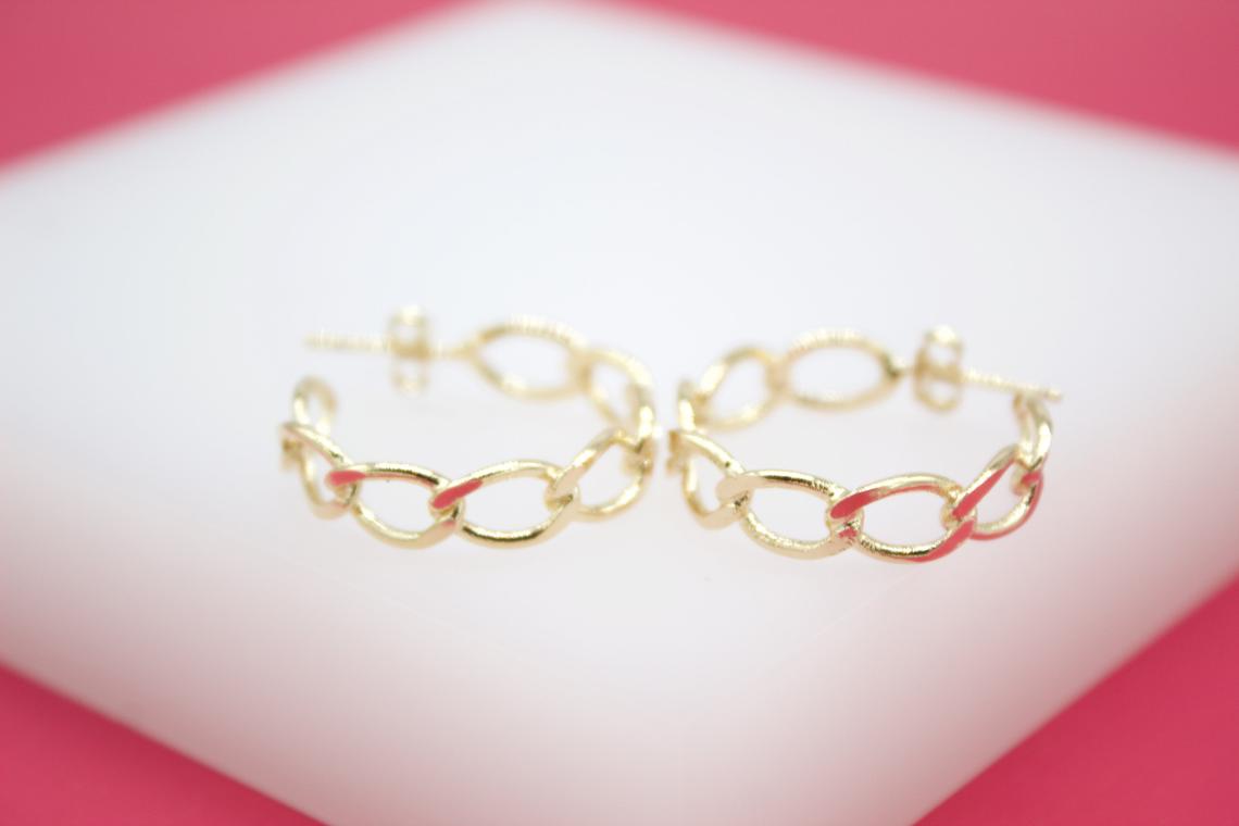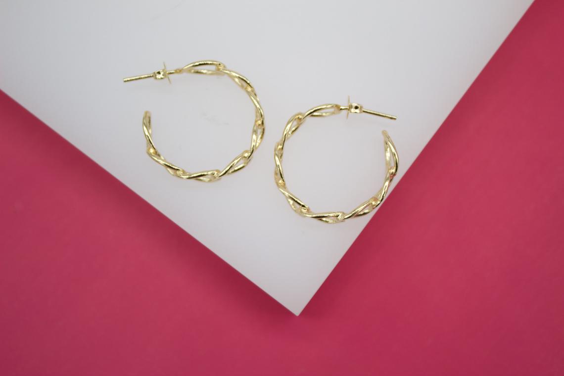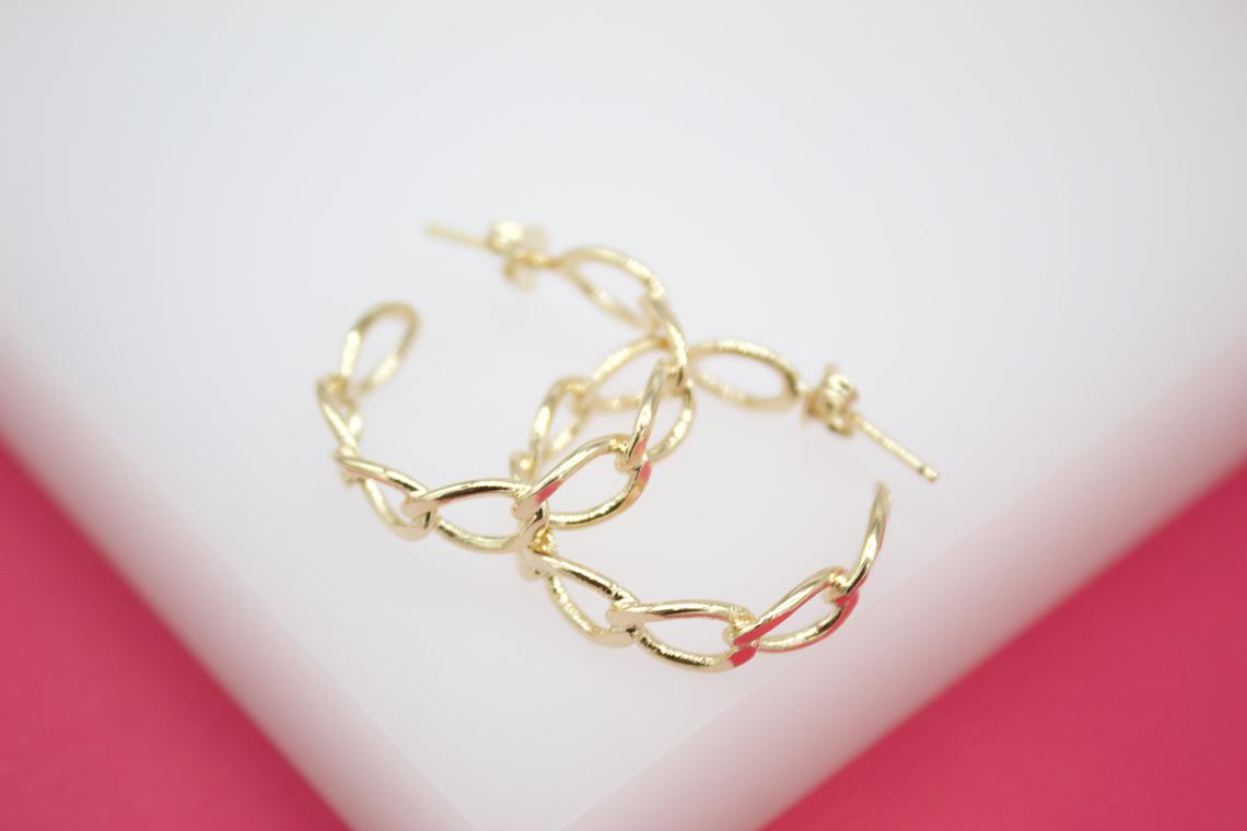 18K Gold Filled 5mm Slim Curb Cuban Open Hoops (K183-184)