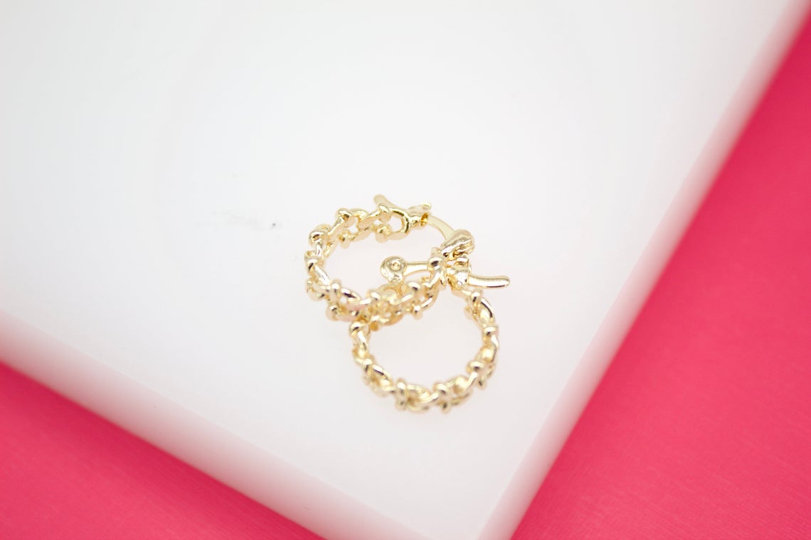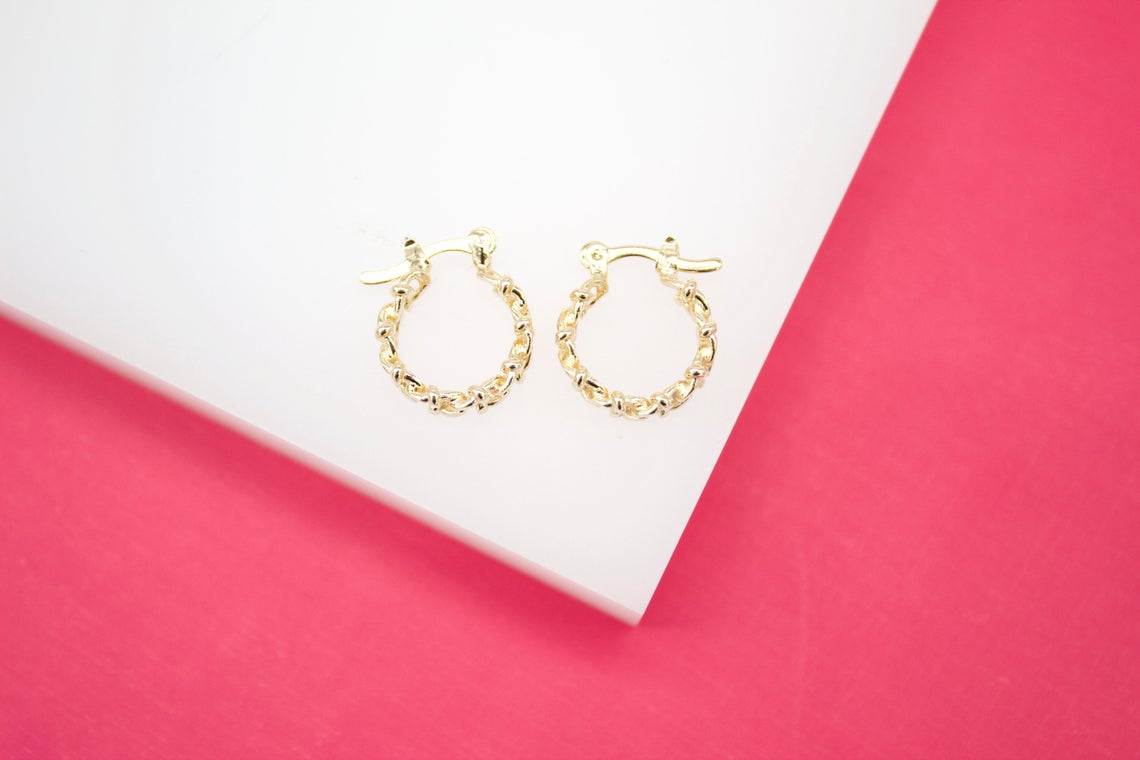 18K Gold Filled 5mm Small Designed Curb Cuban Hoops Lever Back Hoop (K207)