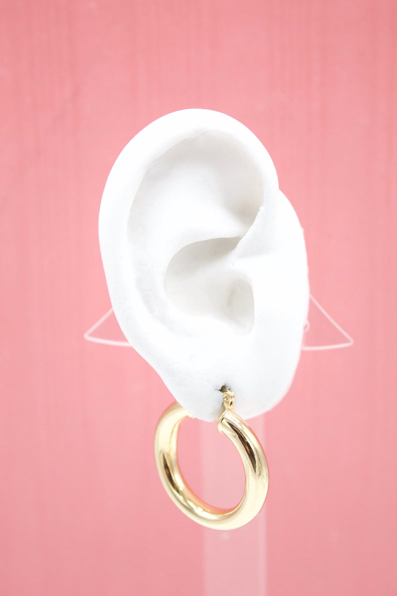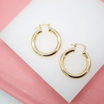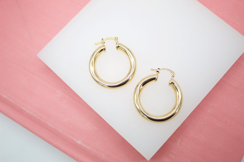 18K Gold Filled 5mm Thick Chunky Lever Back Hoop Earrings With (J207)