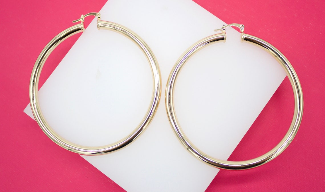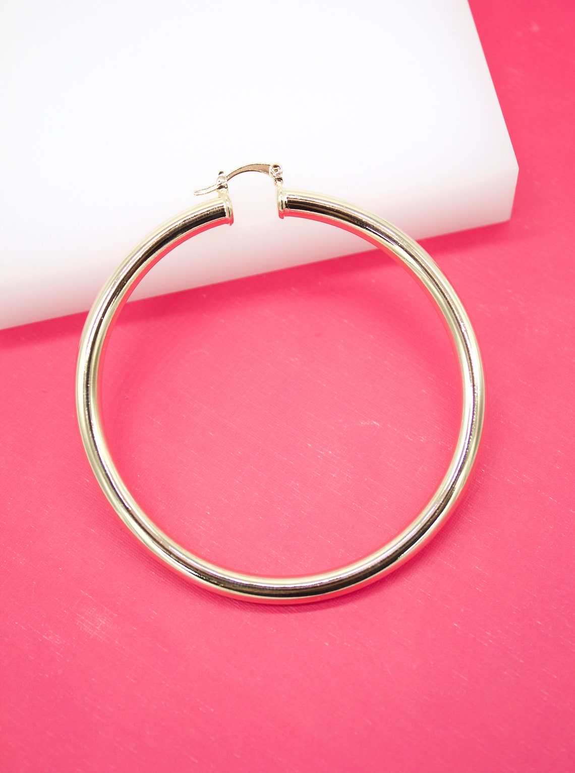 18K Gold Filled 5mm Thick Lever Back Hoop Earrings (J86)