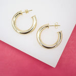 18K Gold Filled 5mm Thick Open Hoop Stud Hoops Earrings (J49)