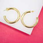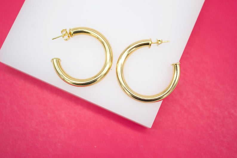 18K Gold Filled 5mm Thick Open Hoop Stud Hoops Earrings (J50)