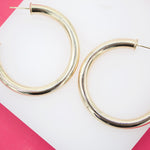 18K Gold Filled 5mm Thick Open Hoop Stud Hoops Earrings (J61)