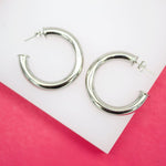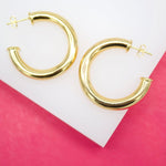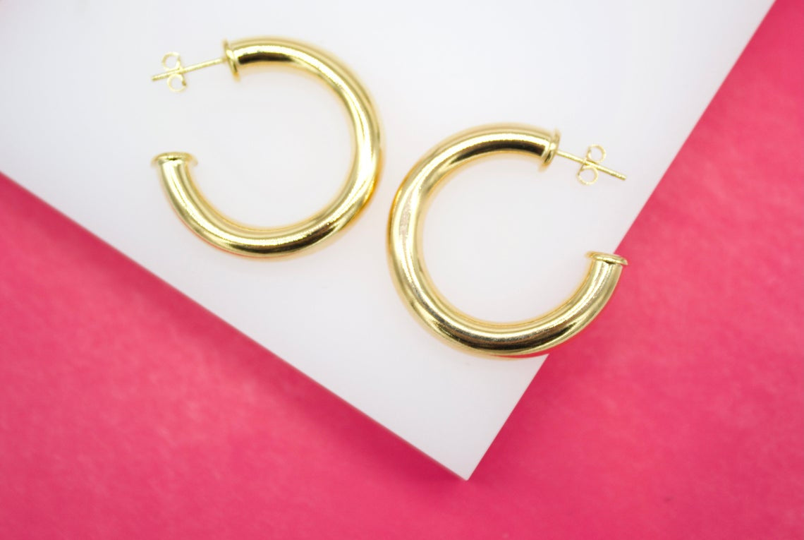 18K Gold Filled 6mm Thick Open Hoop Stud Hoops Earrings (J52)