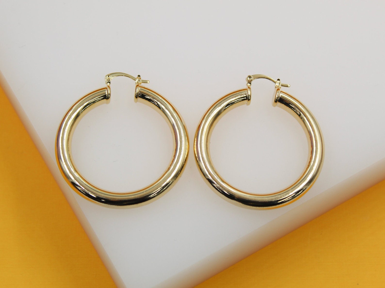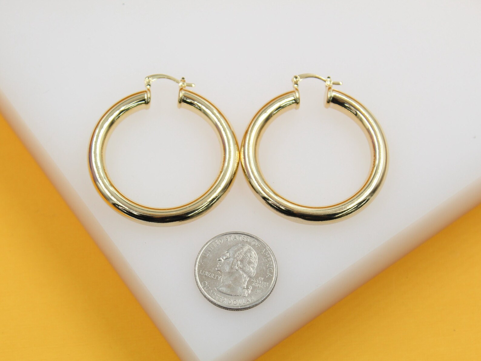 18K Gold Filled 6mm Thin Lever Back Hoop Earrings (J47)
