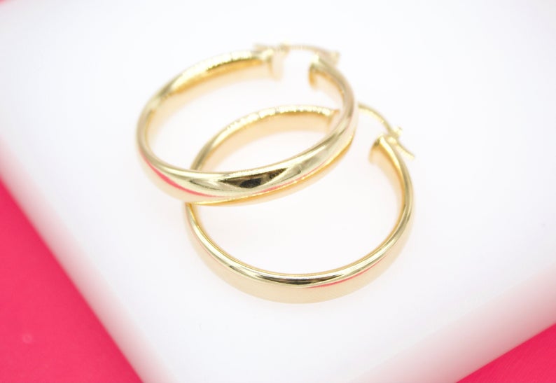 18K Gold Filled 6mm Thin Lever Back Hoop Earrings (J33)