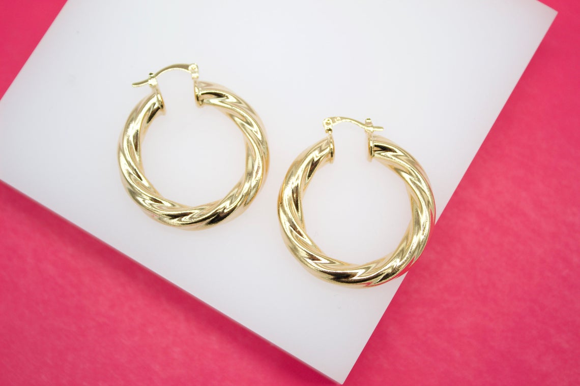 18K Gold Filled 6mm Twisted Hoops Lever Back Earrings (J106)