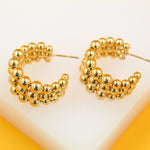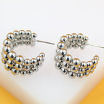 18K Rhodium Filled Beaded Push Back Open Hoop Earrings (J264)