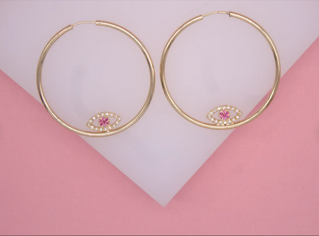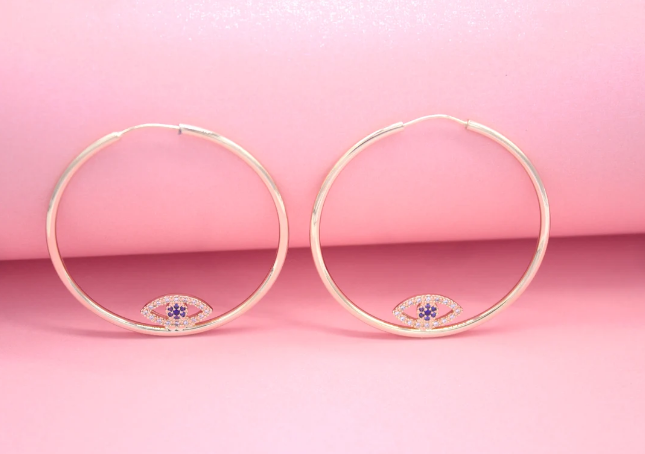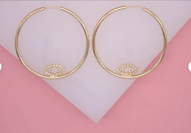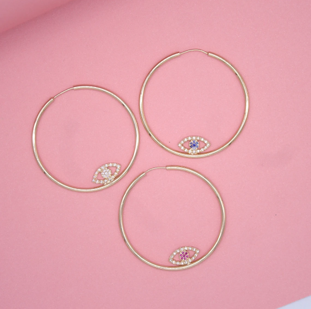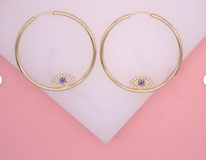 18K Gold Filled CZ Evil Eye Hoop Earrings | Dainty Evil Eye Hoop Earrings