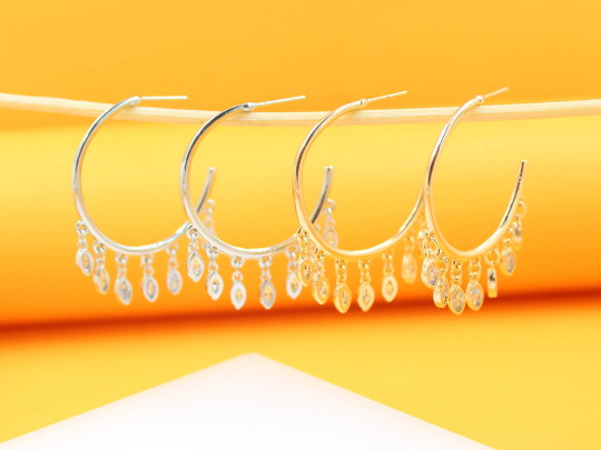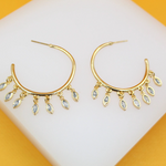 18K Gold Filled CZ Open Dangle Hoop Earrings (J191)