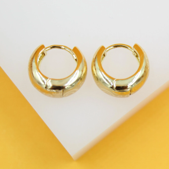 18K Gold Filled Designed Thick Classic Huggies Earrings