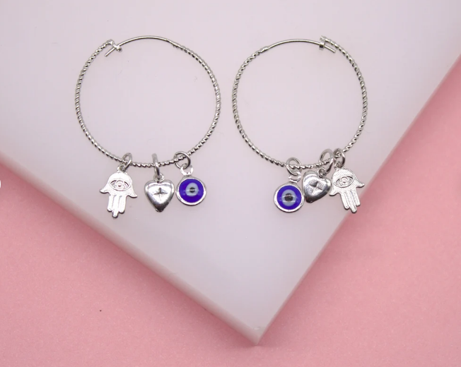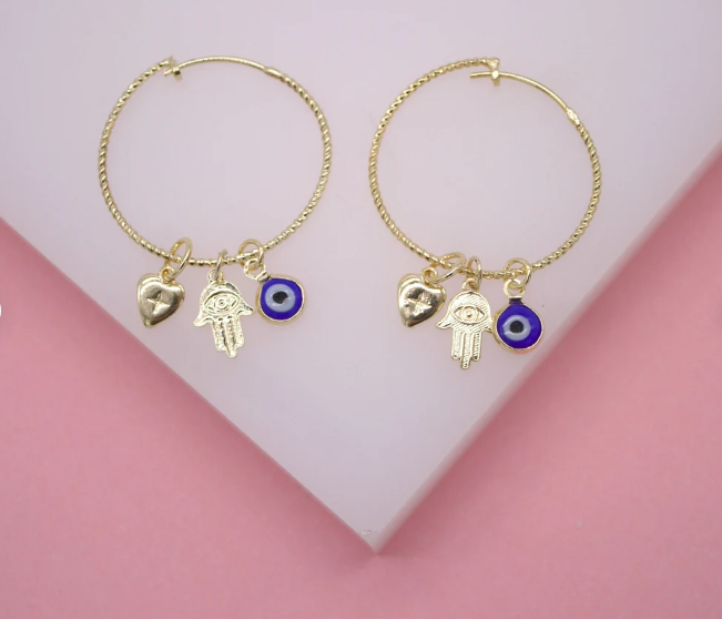 18K Gold Filled Evil Eye Hoop Dangle Earrings | Dainty Evil Eye Earrings
