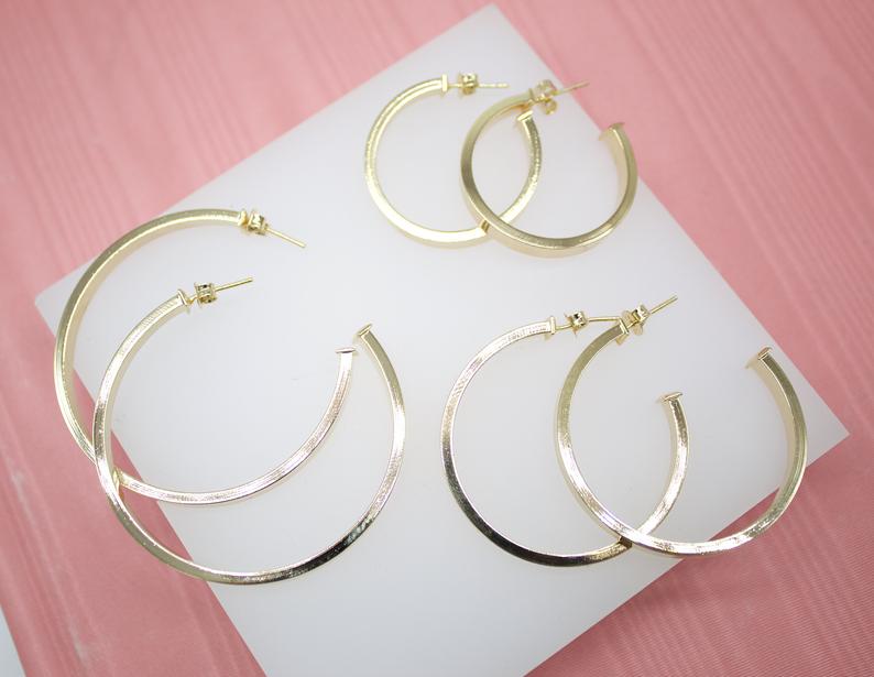 18K Gold Filled Flat Open Hoop Earrings (J67)(J68)(J69)