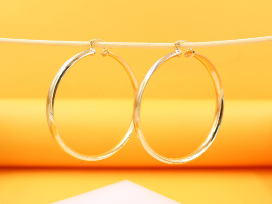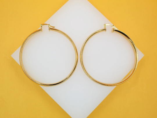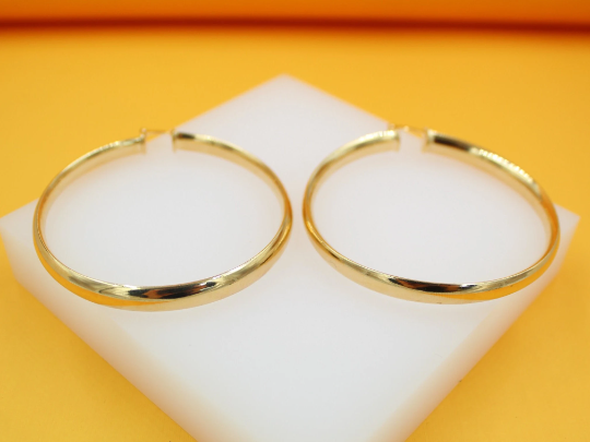 18K Gold Filled Flat Open Hoop Earrings (J37)