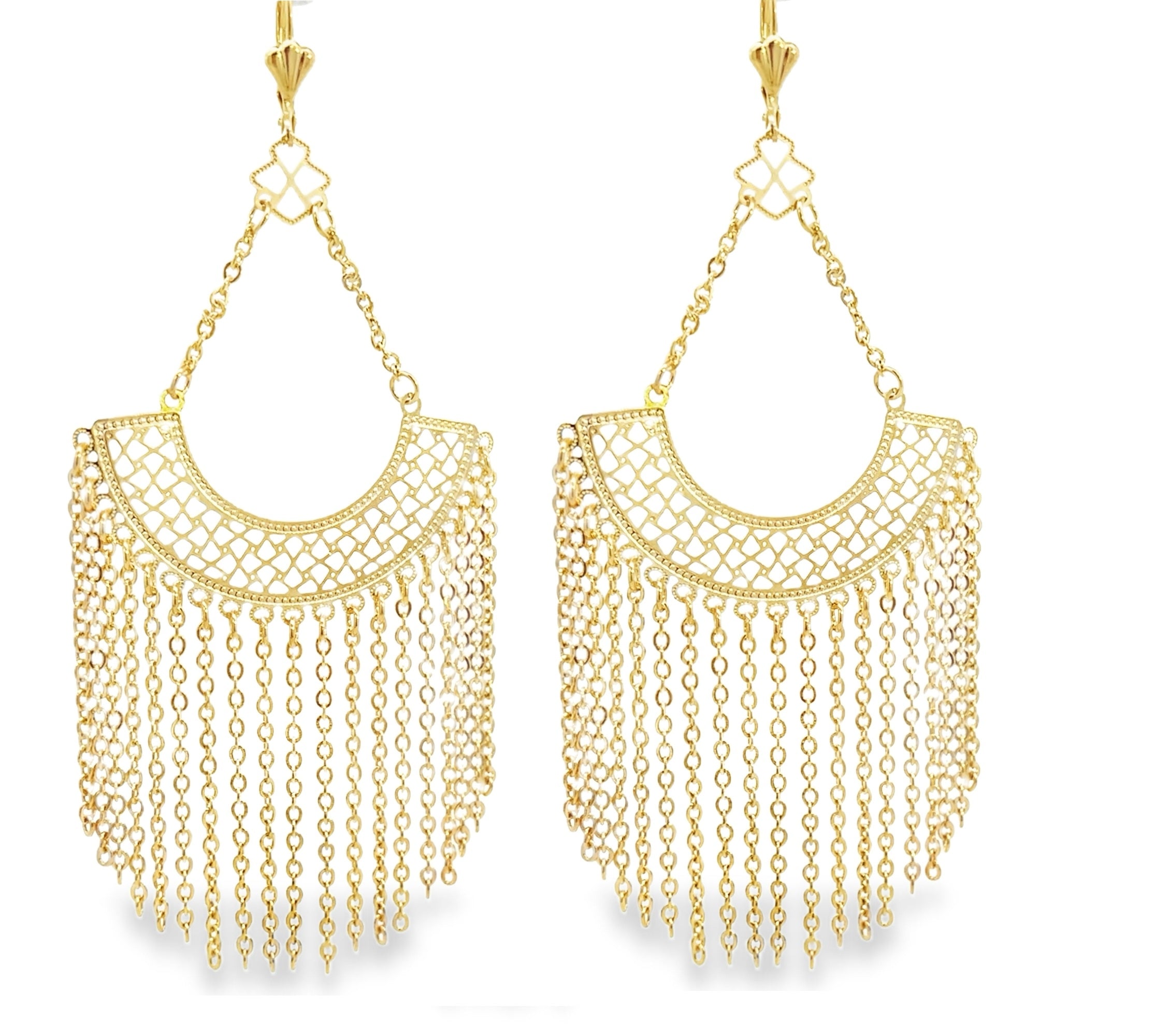 18K Gold Filled Hoop Drop Tassel Fringe Earrings