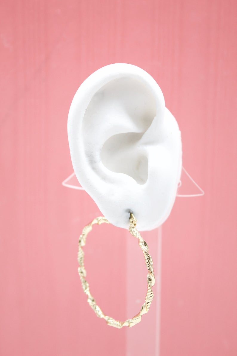 18K Gold Filled Medium Twisted Leverback Hoop Earrings (K136)