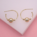 18K Gold Filled Round Beaded Hoop Earrings (K299)
