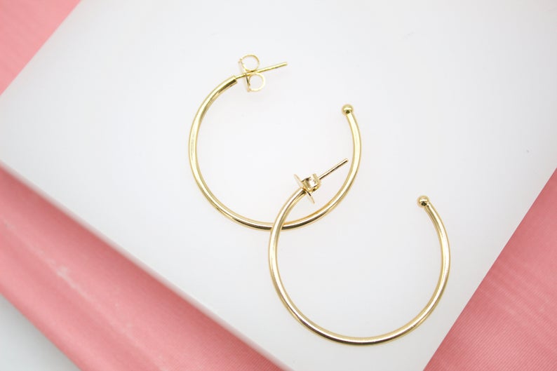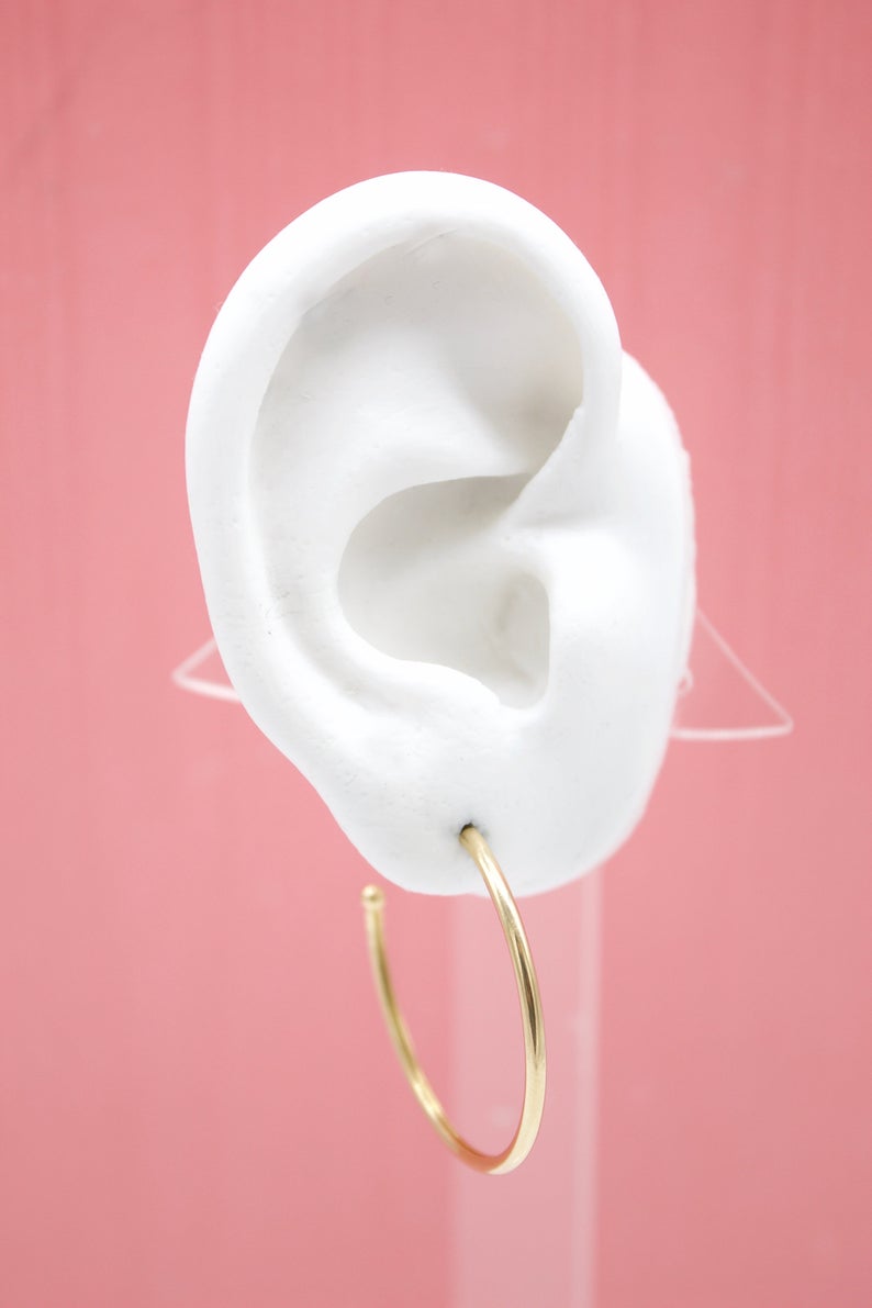 18K Gold Filled Slim Open Hoop Stud Earrings (J81)
