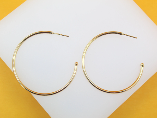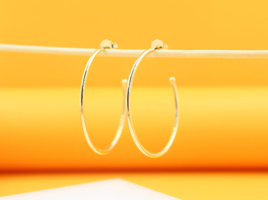 18K Gold Filled Slim Open Hoop Stud Earrings (J81)