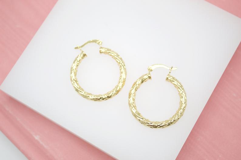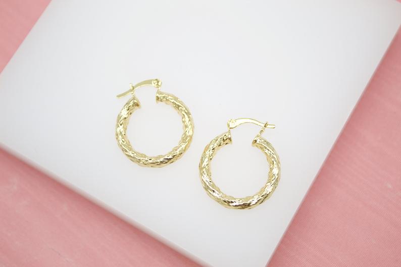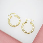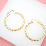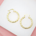 18K Gold Filled Textured 4mm Slim Hoops Lever Back Hoop (J124-126)
