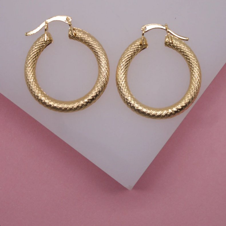 18K Gold Filled Textured Hoop Earrings | Gold Filled Hoop Earrings