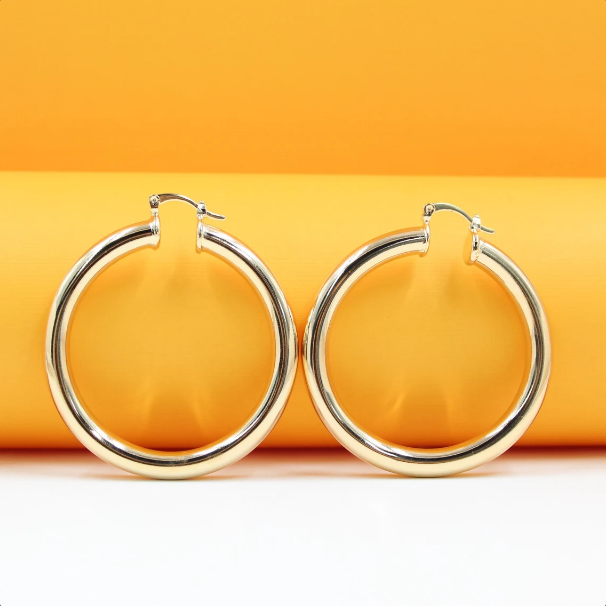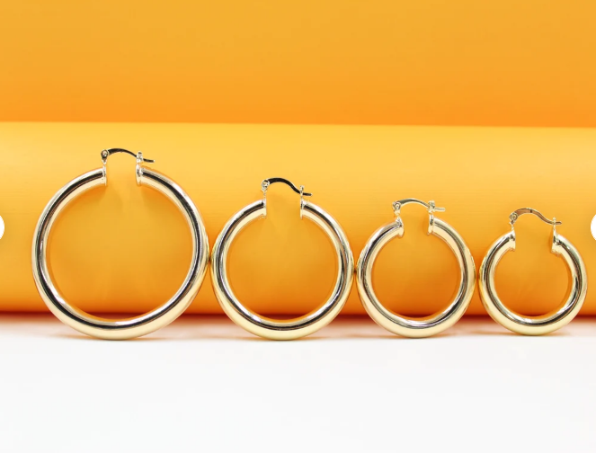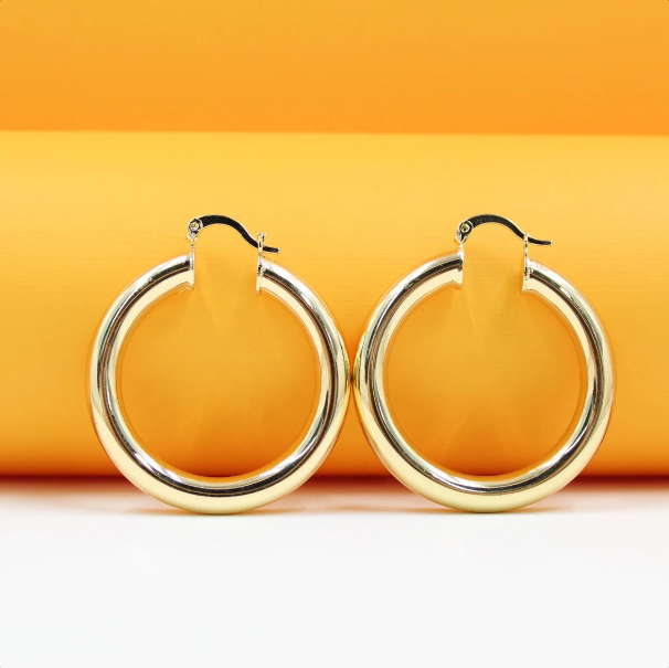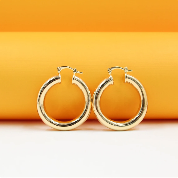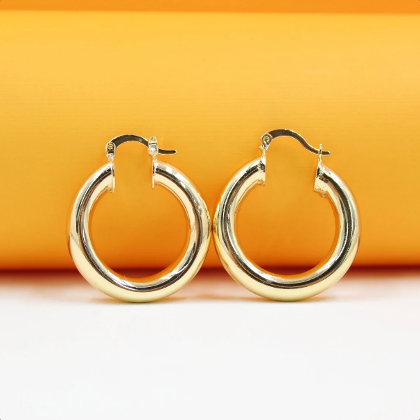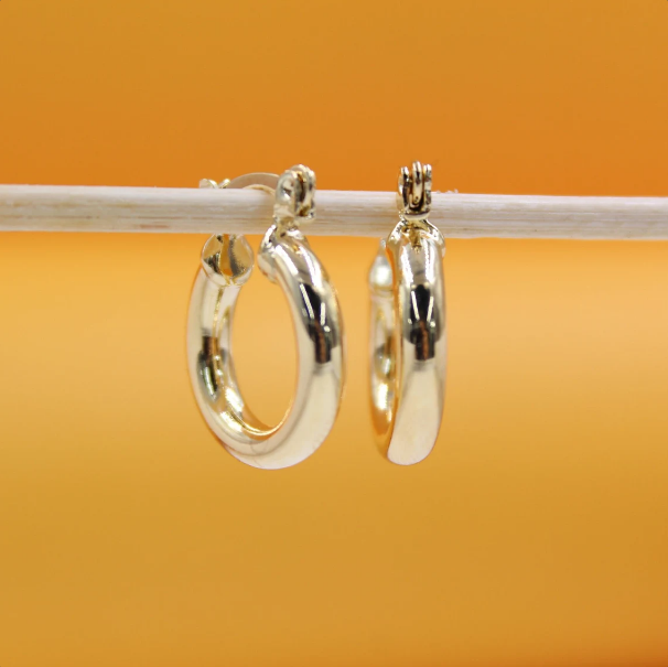 18K Gold Filled Thick Lever Back Hoop Earrings | Gold Open Hoop Studs (J14, J15, J16)