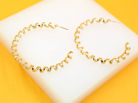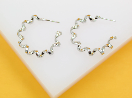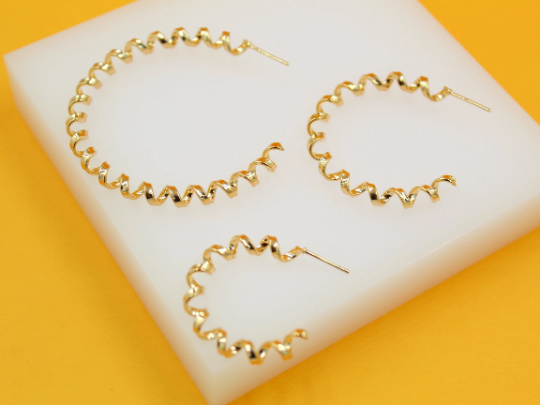 18K Gold Filled Thick Spiral Hoops Lever Back Earrings (J242-244)