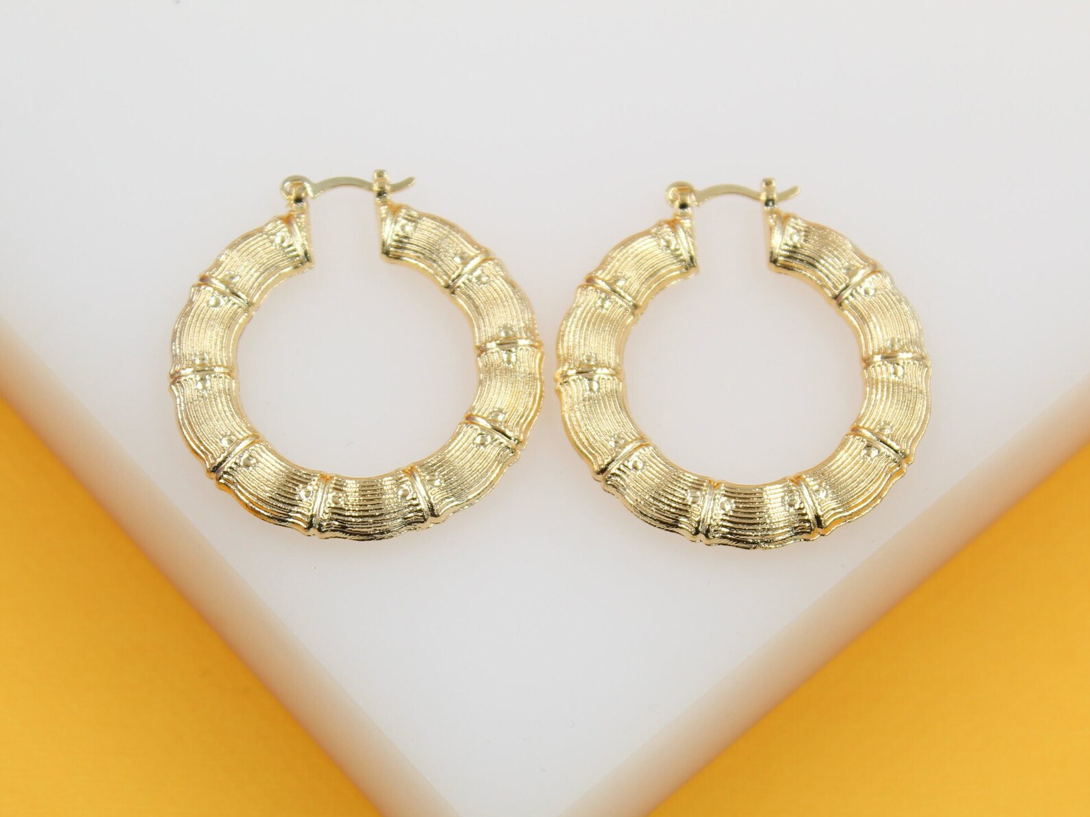 18K Gold Filled Thick Textured Hoop Earrings (K48A)
