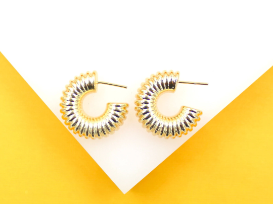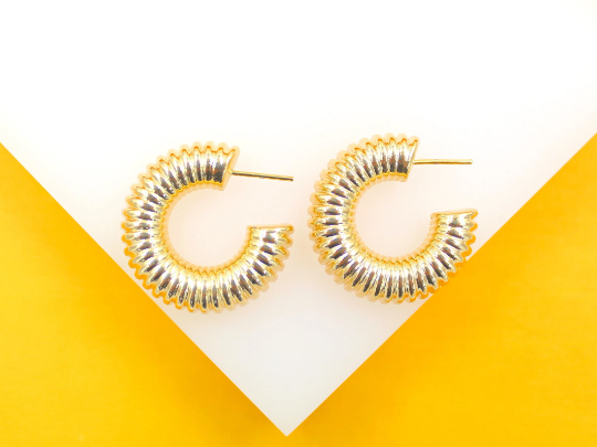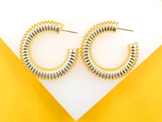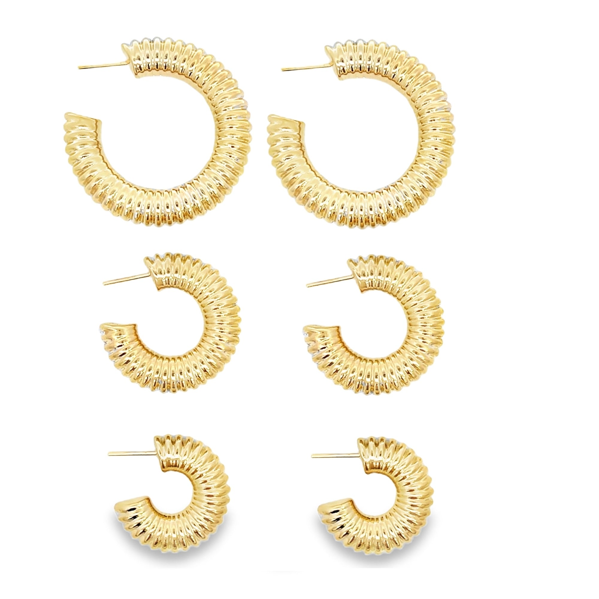 18K Gold Filled Thick Textured Hoop Earrings (J203)(J202) (J201)