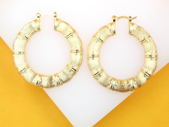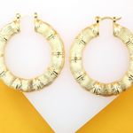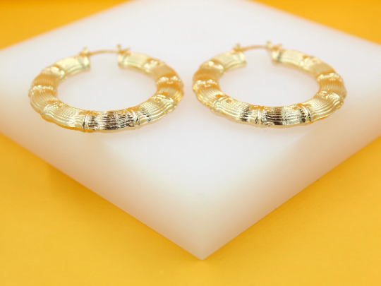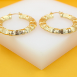 18K Gold Filled Thick Textured Latch Back Hoop Earrings