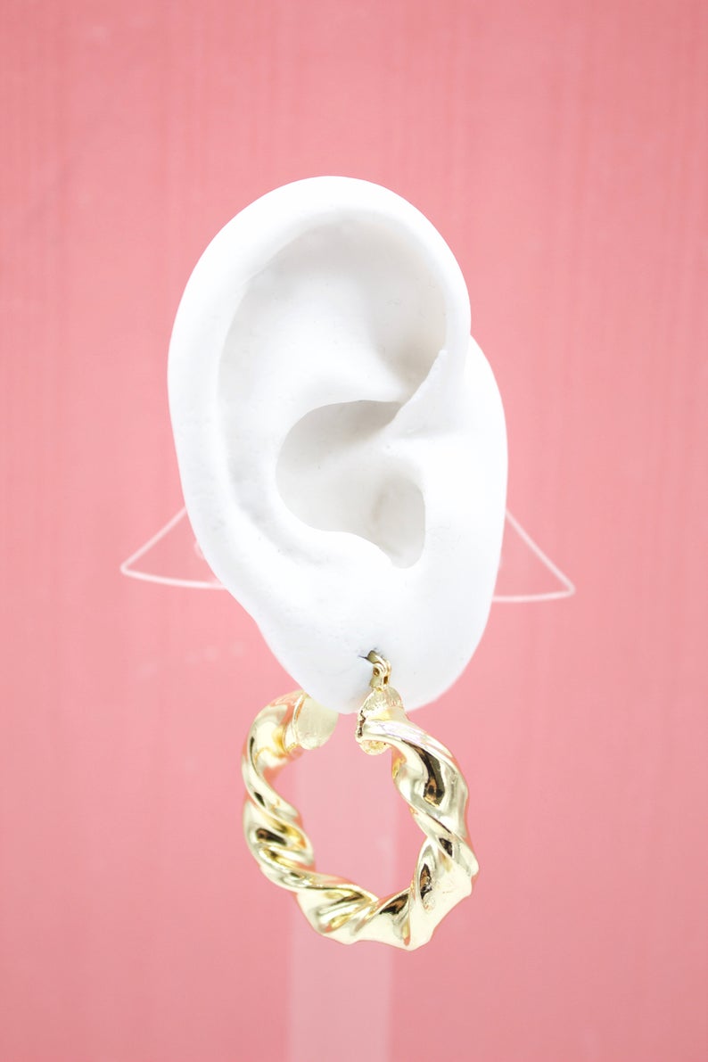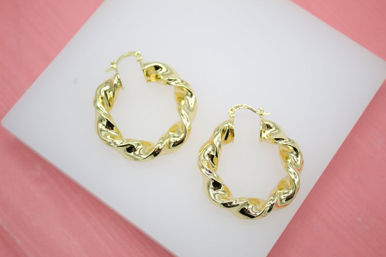 18K Gold Filled Thick Twist Hoops French Hook Lever Back Earrings (K36)