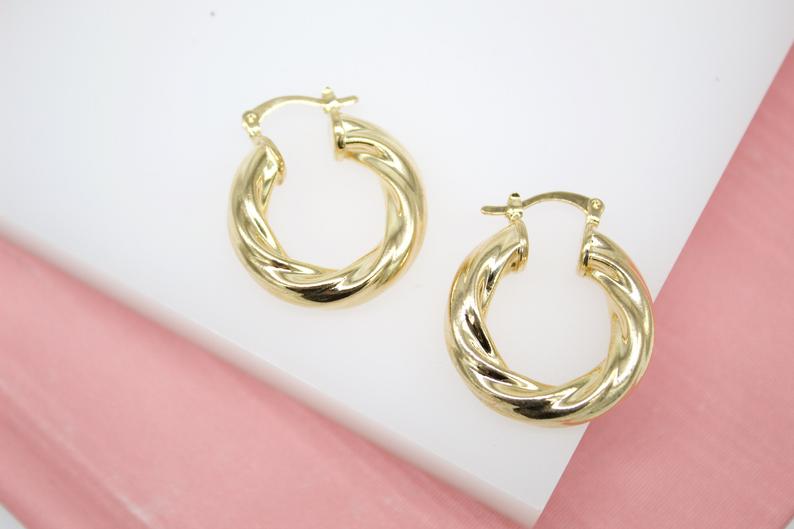 18K Gold Filled Twisted Hoop Lever Back Earrings (J105)