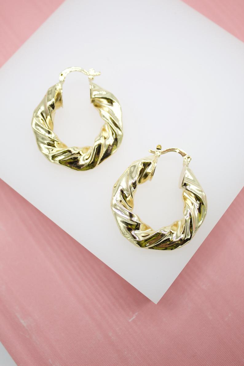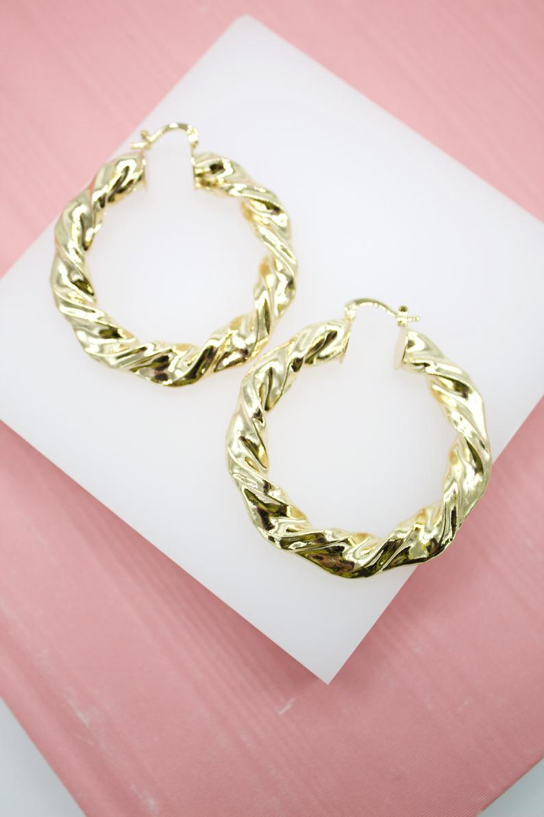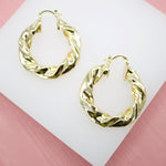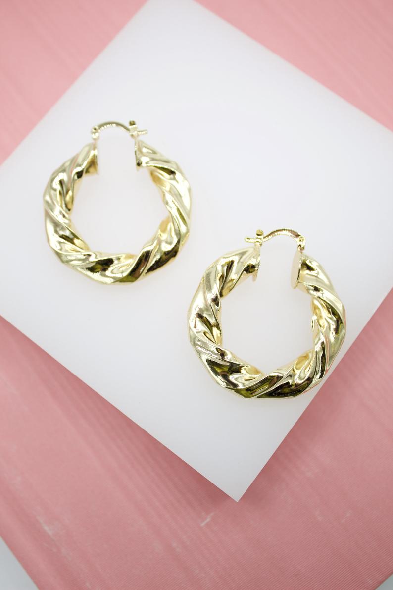 18K Gold Filled Twisted Thick Leverback Hoop Earrings (K25-27)