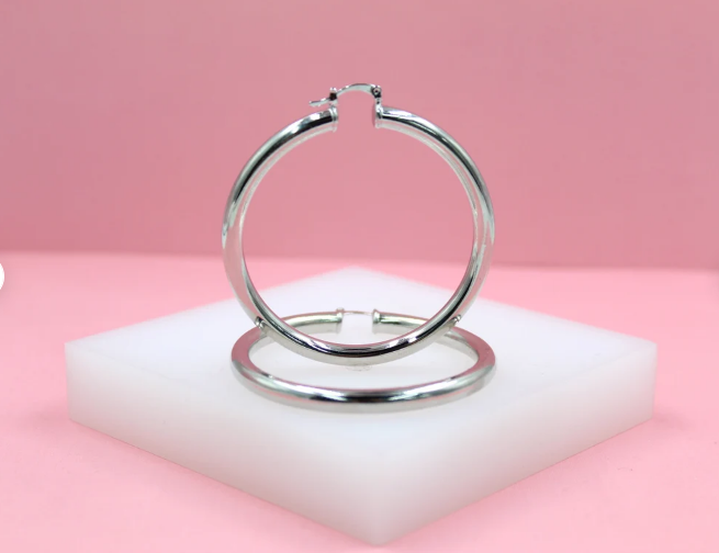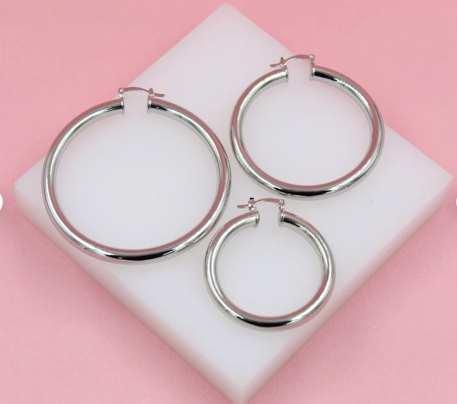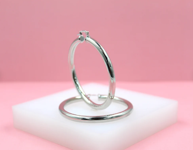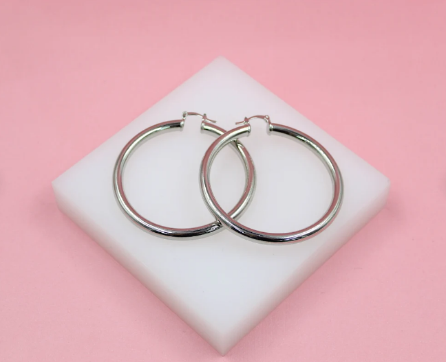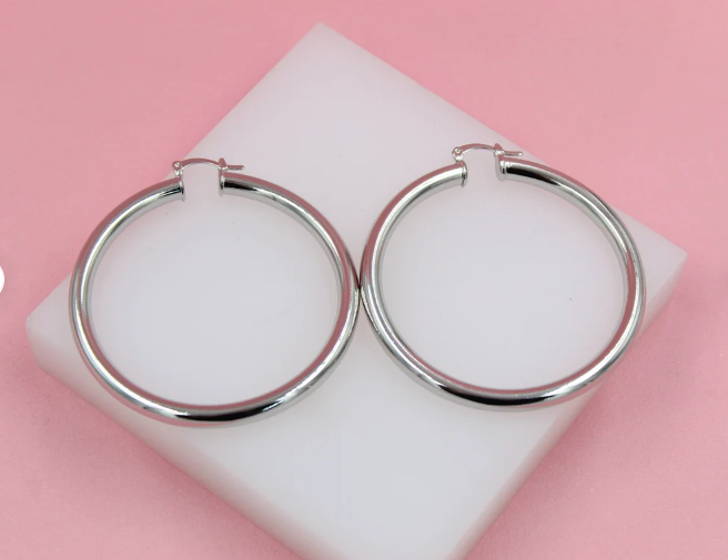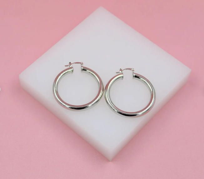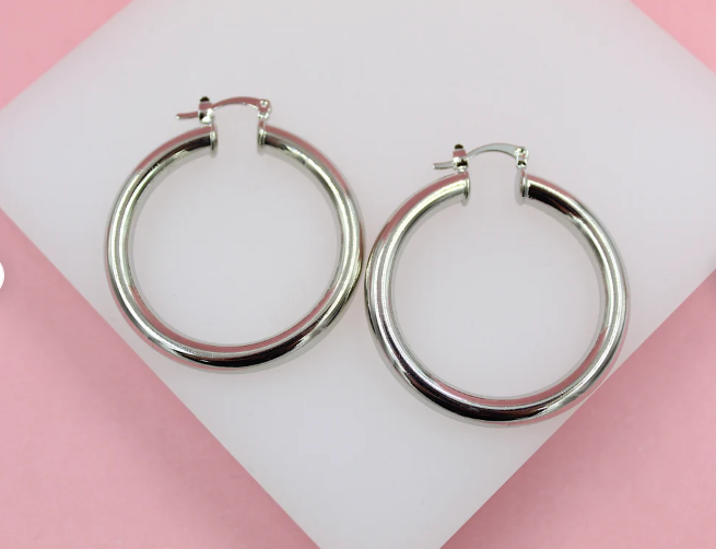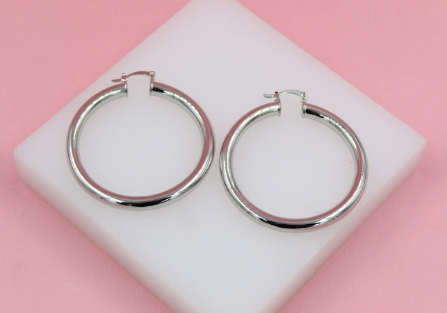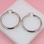 18K Rhodium Filled 5mm Latch Back Wide Hoop Earrings (J11-13)