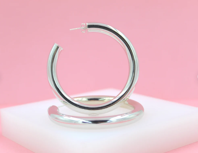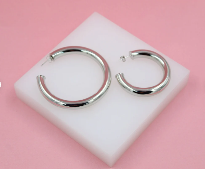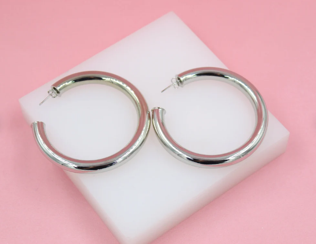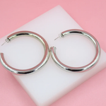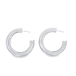 18K Rhodium Filled 7mm Thick Chunky Open Hoop Earrings (J29)(J30)