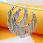 18K Rhodium Filled Open Beaded Dangle Hoop Earrings