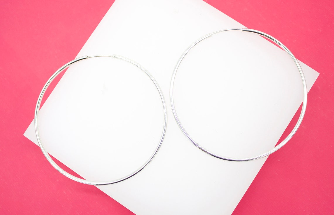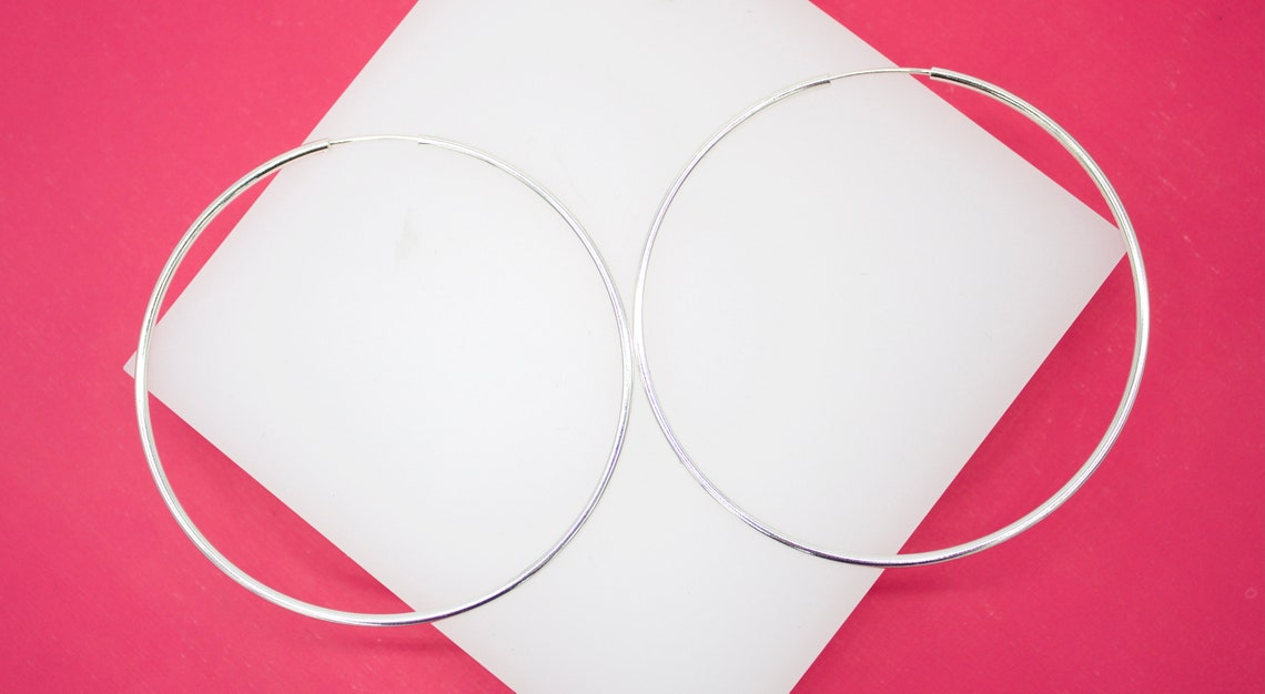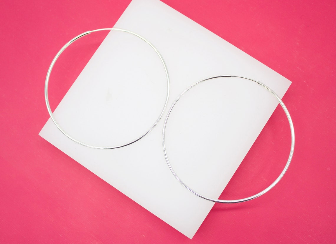 18K Rhodium Filled Slim Endless Hoop Stud Earrings (K105)(K109-110)(K118)