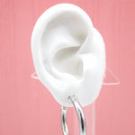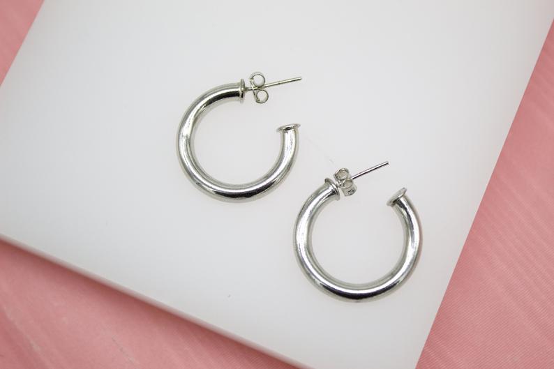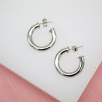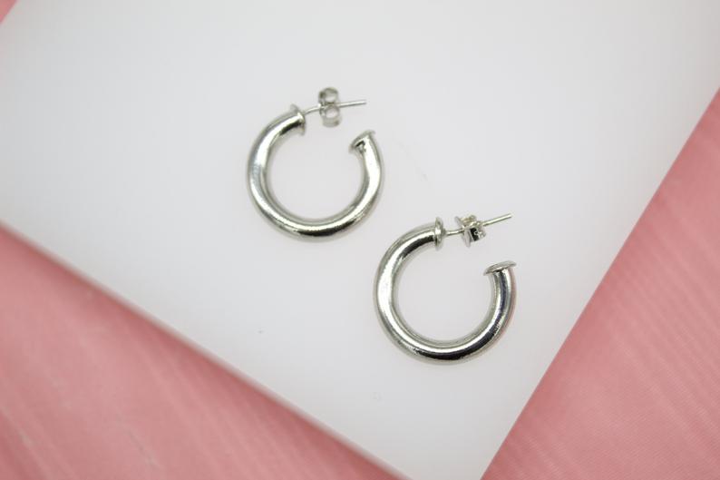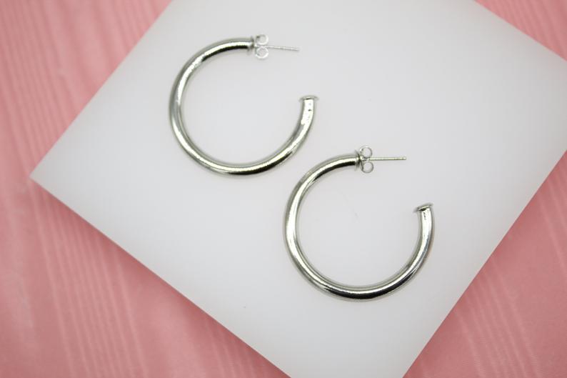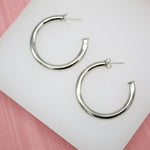 18K Rhodium Filled Thick 4mm Open Hoop Stud Hoops Earrings (J48)(J51)(J71