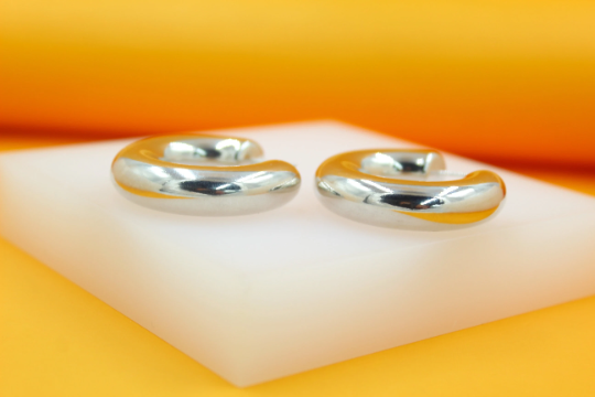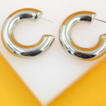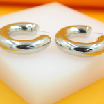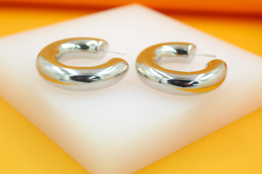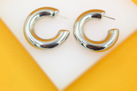 18K Rhodium Filled Thick Chunky Open Hoop Earrings (J214)