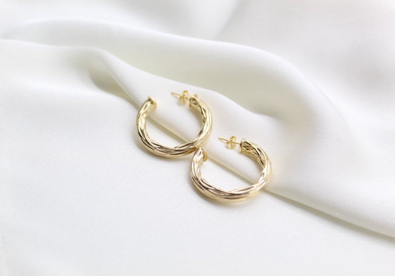 Medium Thick Hammered Hoops, Small, Medium or Large (K10-12)